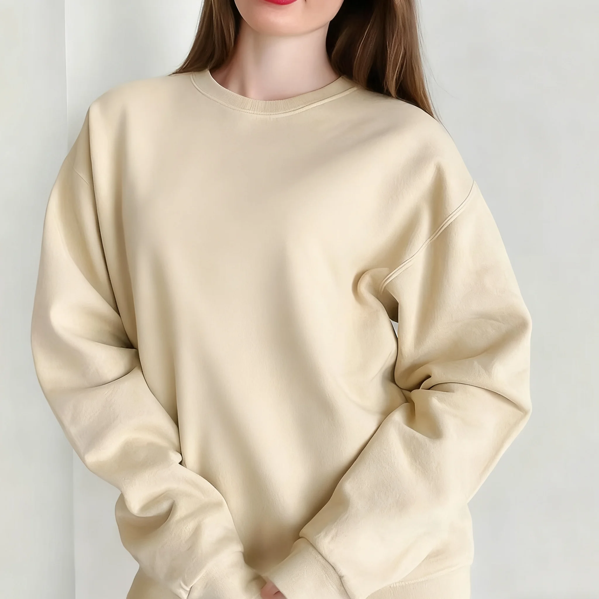 Custom Winter Soft Cotton Fleece Vintage Front Puff Printing Breathable Quick Dry 180g Custom Brand Oversized Sweatshirt Woman